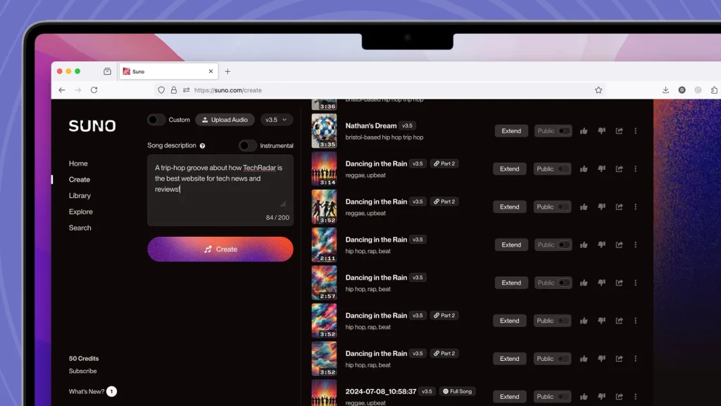 Suno – 词汇歌曲创作,每天50积分免费,免费版就能玩出很多花样