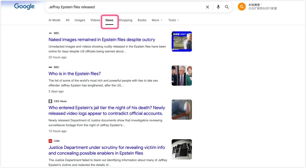 2. 输入感兴趣的话题关键词(如 Jeffrey Edward Epstein)